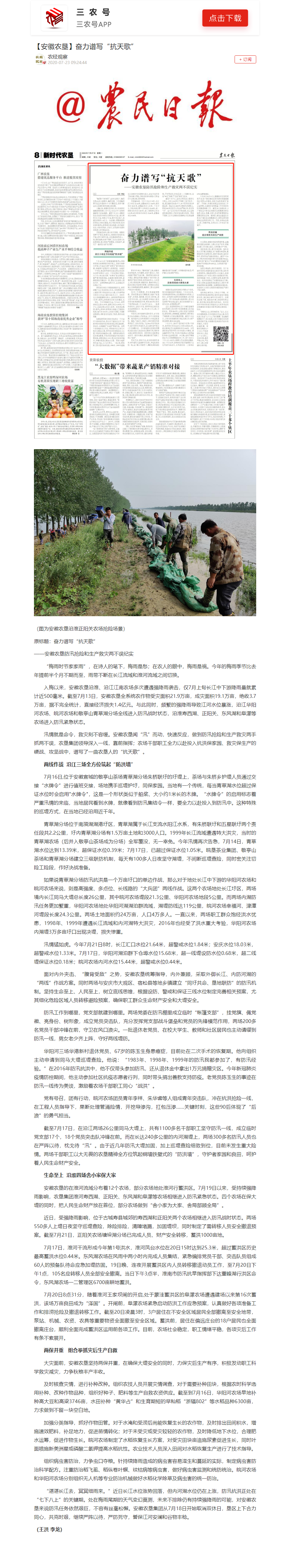 安徽农垦集团:安徽日报:闻“汛”而动 农垦全力抗洪保产